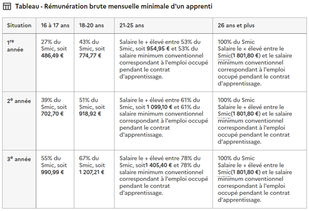 Quelle sera le montant de la rémunération de l'apprenti(e) ?